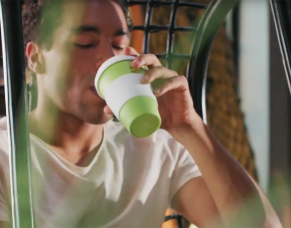 Die abnehmbare Manschette aus Silikon sorgt für optimale Griffigkeit, durch den abnehmbarem Silikondeckel bleiben Getränke auch unterwegs geschützt.